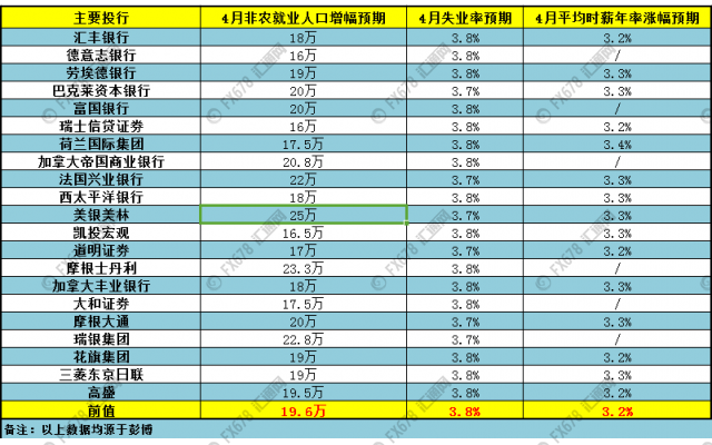 时薪增速依然是关注的焦点,由于美国近期时薪增速一直处于较高的水平,如果该数据进一步转好,可能会进一步推动消费水平的提高,并转化为通胀压力。本周公布的美国3月个人消费支出增幅为2009年以来最大,分析人士认为部分原因是时薪增速水平较高推动了消费需求的增长,因此料本次时薪增速将维持较高的水平。目前市场的预测总体介于3.2%至3.3%,前值为3.2%,荷兰国际甚至给出了3.4%的预测,因此料时薪增速将会给黄金带来进一步的压力。